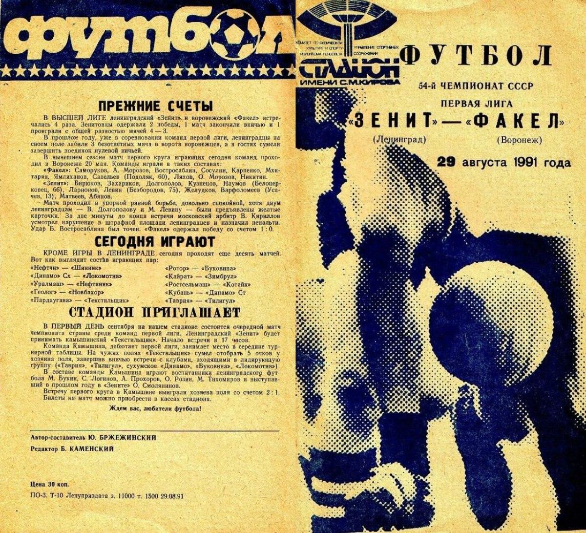«Зенит» Ленинград - «Факел» Воронеж - 1:0