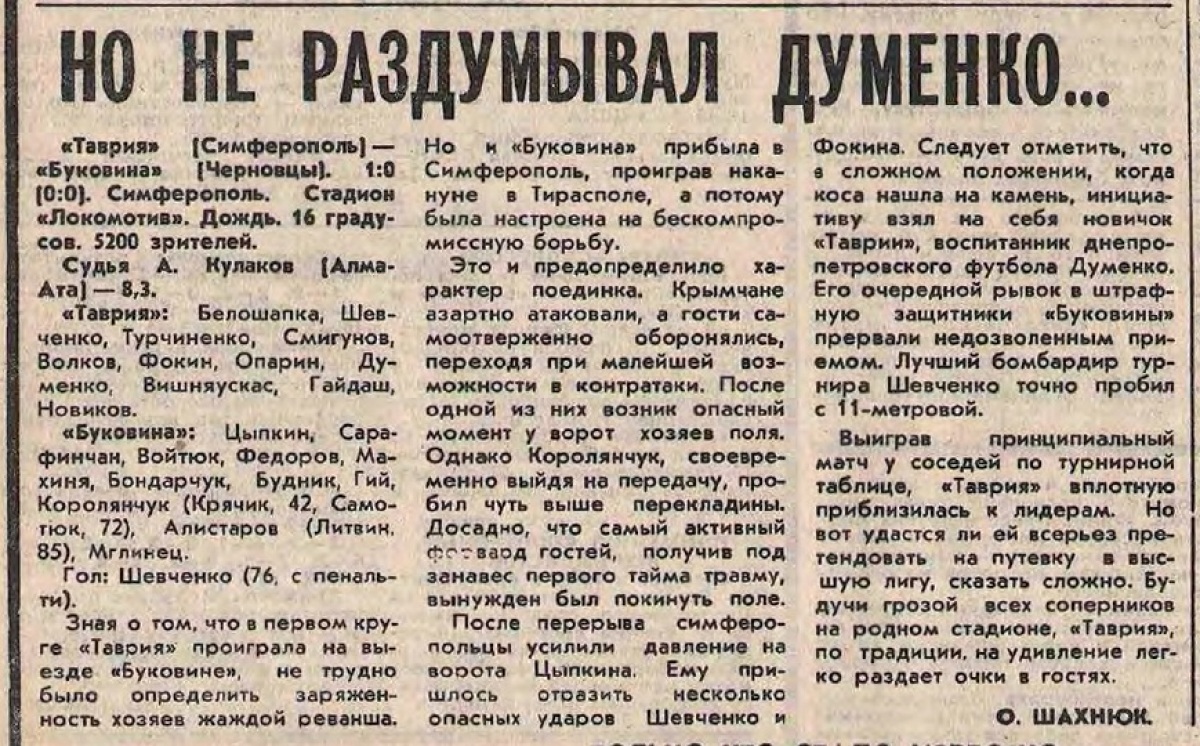 «Таврия» Симферополь - «Буковина» Черновцы - 1:0