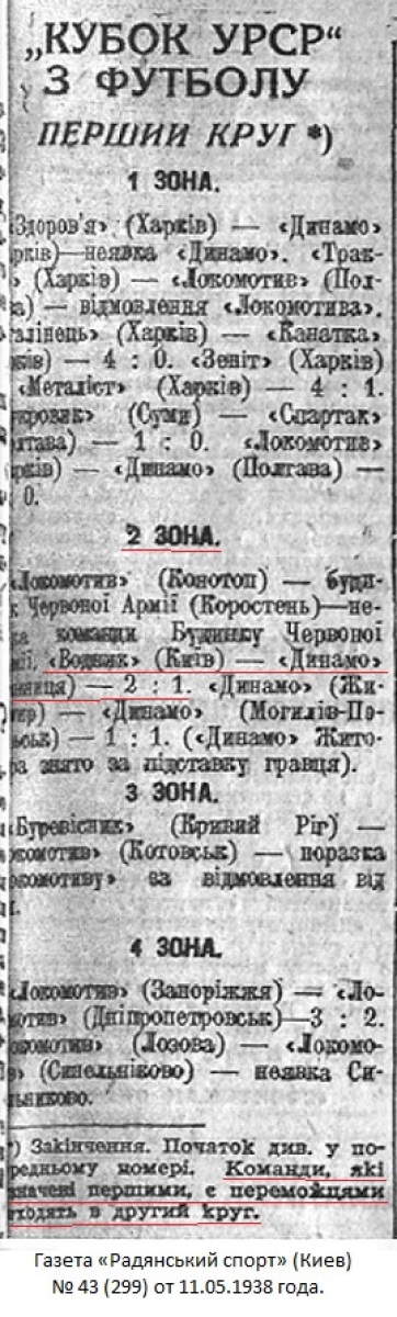 Газета «Радянський спорт» (Киев) № 43 (299) от 11.05.1938 года (перевод).