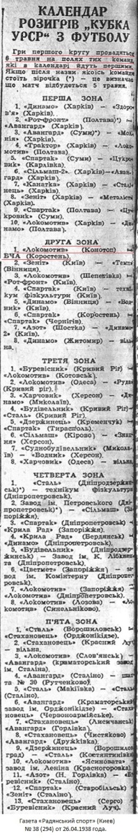 Газета «Радянський спорт» (Киев) № 38 (294) от 26.04.1938 года (перевод).