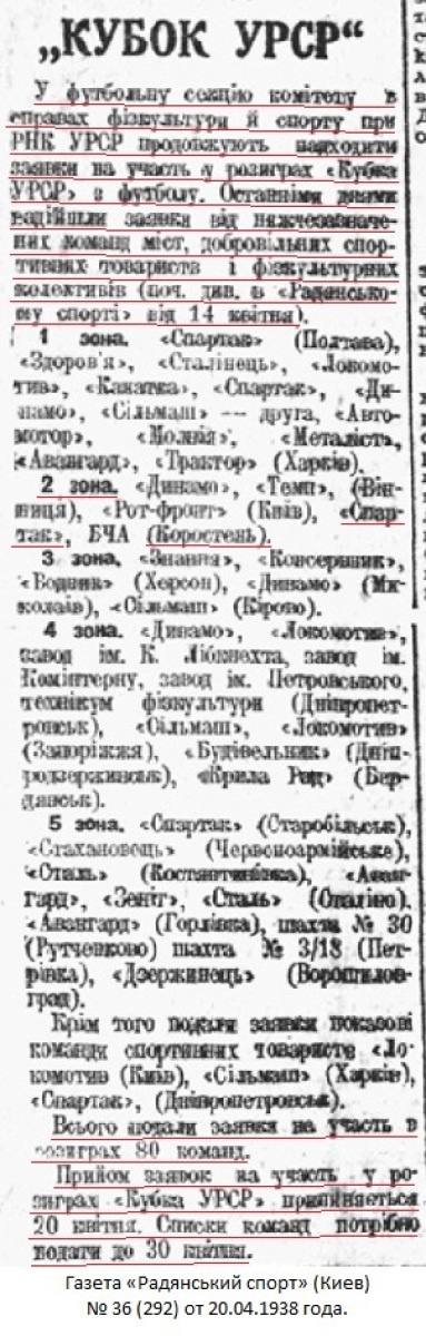 Газета «Радянський спорт» (Киев) № 36 (292) от 20.04.1938 года (перевод).