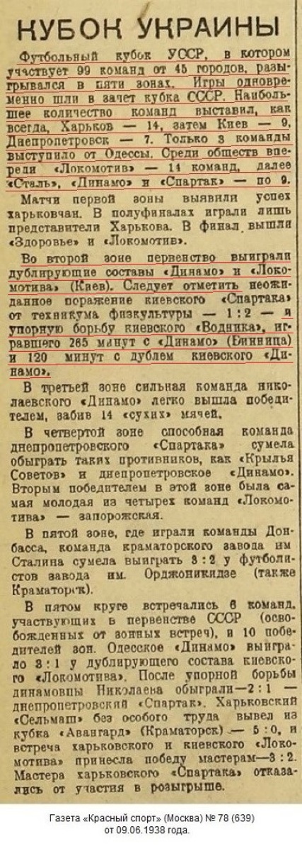 Комментарий. Команда «Динамо-клубная» (Киев), войдя в число двух команд-победителей групп 15-й зоны (Киев) розыгрыша Кубка СССР 1938 года, завоевала право участия в финальной части розыгрыша Кубка СССР (1/32 финала - финал).