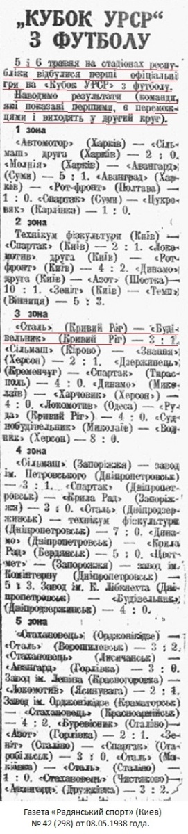 Газета «Радянський спорт» (Киев) № 42 (298) от 08.05.1938 года (перевод).