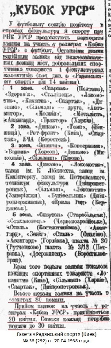 Газета «Радянський спорт» (Киев) № 36 (292) от 20.04.1938 года (перевод).