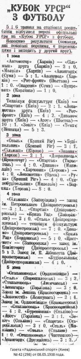 ...3 зона. «Знание» (Херсон), ..., «Сельмаш» (Кирово)...