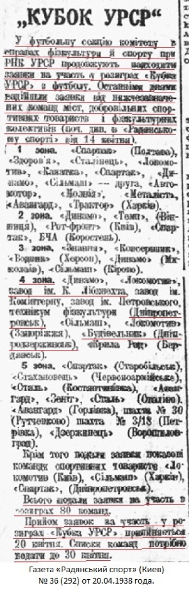 Газета «Радянський спорт» (Киев) № 36 (292) от 20.04.1938 года (перевод).