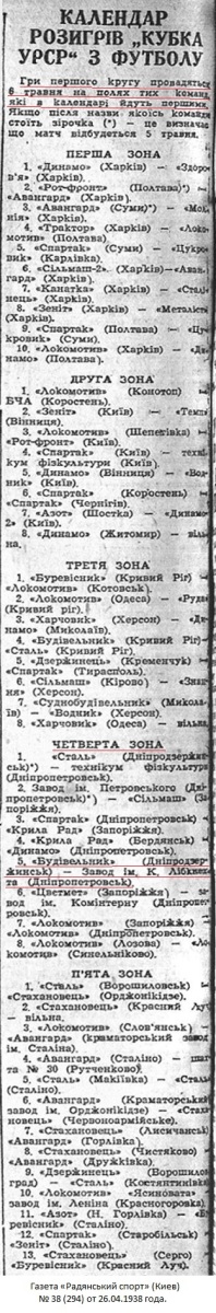 Газета «Радянський спорт» (Киев) № 38 (294) от 26.04.1938 года (перевод).