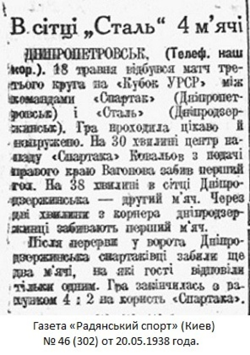 Газета «Радянський спорт» (Киев) № 46 (302) от 20.05.1938 года (перевод).