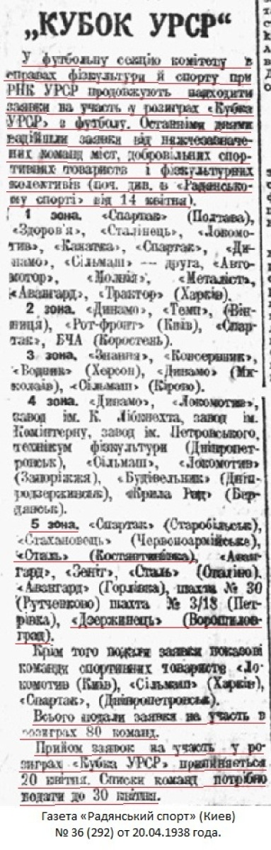 Газета «Радянський спорт» (Киев) № 36 (292) от 20.04.1938 года (перевод).