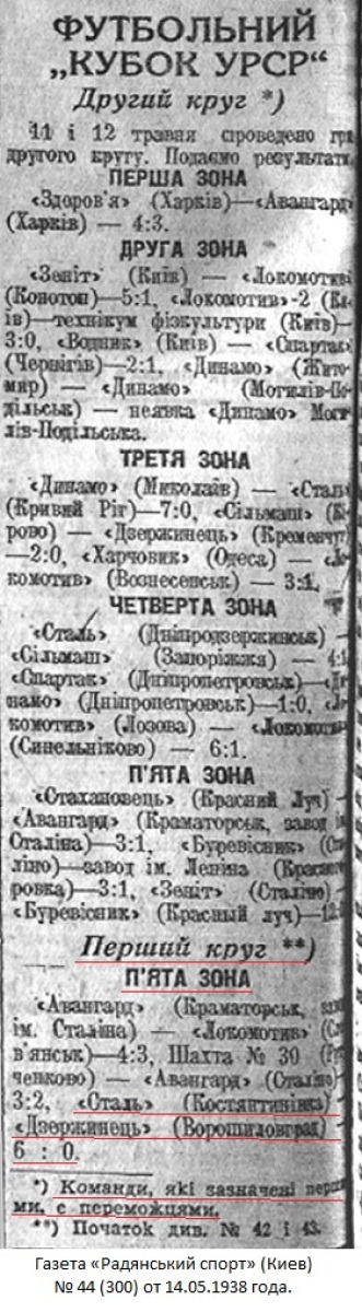 Газета «Радянський спорт» (Киев) № 44 (300) от 14.05.1938 года (перевод).