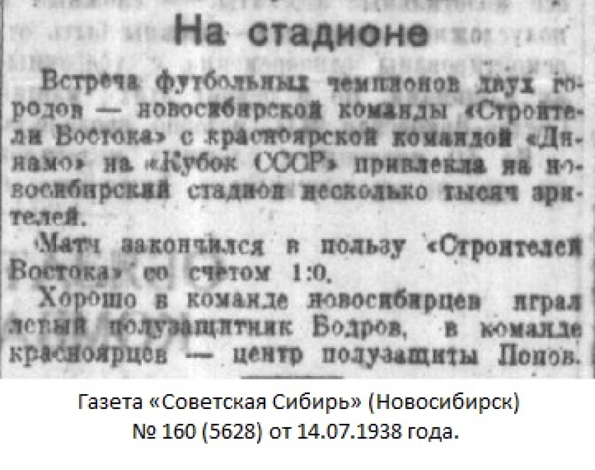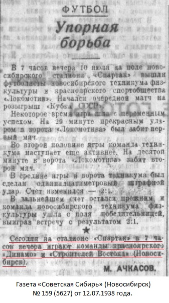 «Строитель Востока» Новосибирск - «Динамо» Красноярск - 1:0
