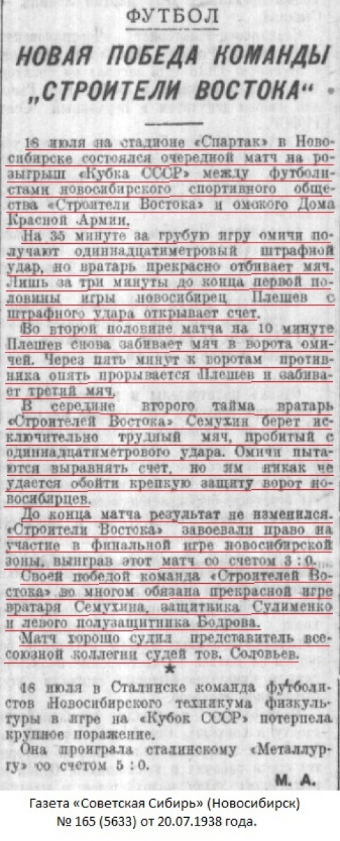 «Строитель Востока» Новосибирск - ДКА Омск - 3:0