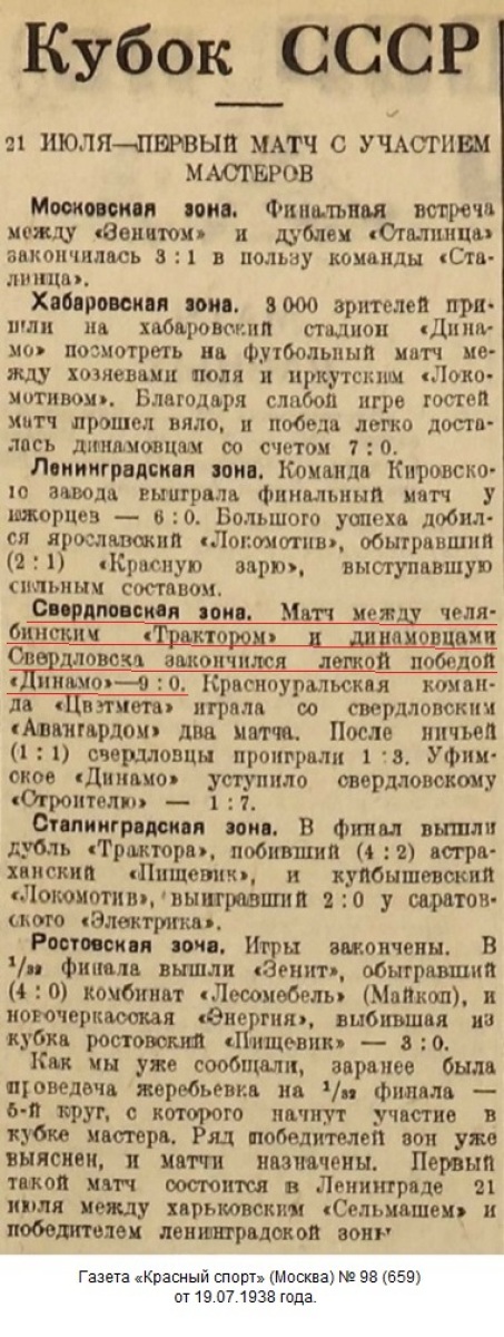 ...Сегодня вечером на стадионе «Динамо» состоится игра на «Кубок СССР» городов Свердловской зоны. Встречаются «Динамо» (Свердловск) – «Трактор» (Челябинск).