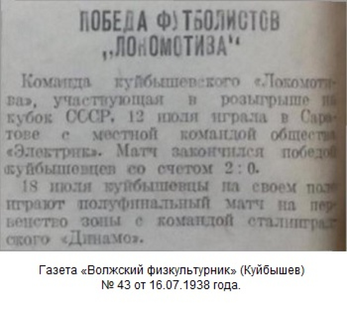 «Электрик» Саратов - «Локомотив» Куйбышев - 0:2