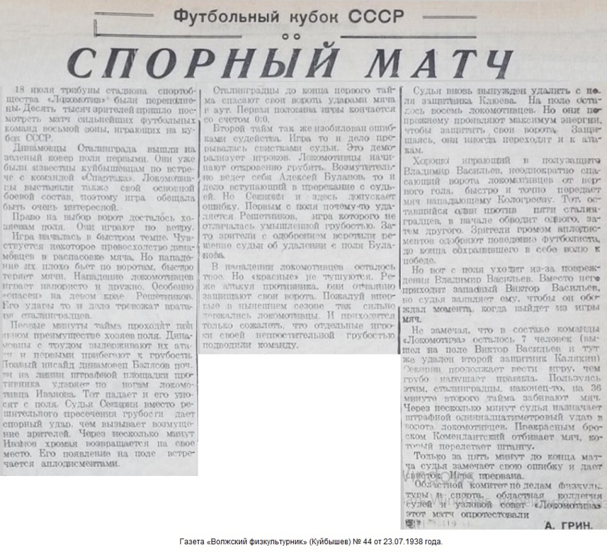 2. Команда «Динамо» (Сталинград), войдя в число двух команд-победителей групп 8-й зоны (Сталинград) розыгрыша Кубка СССР 1938 года, завоевала право участия в финальной части розыгрыша Кубка СССР (1/32 финала - финал).