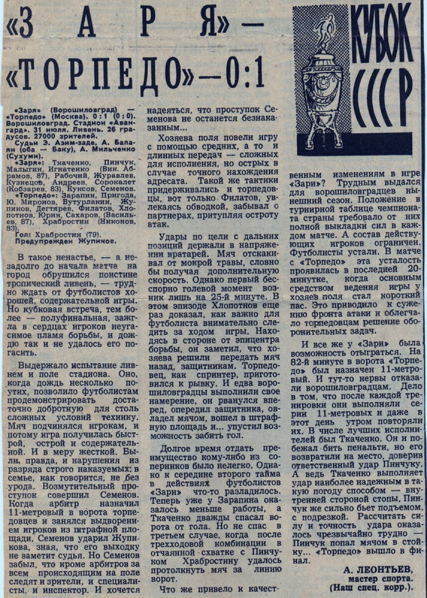 «Заря» Ворошиловград - «Торпедо» Москва - 0:1