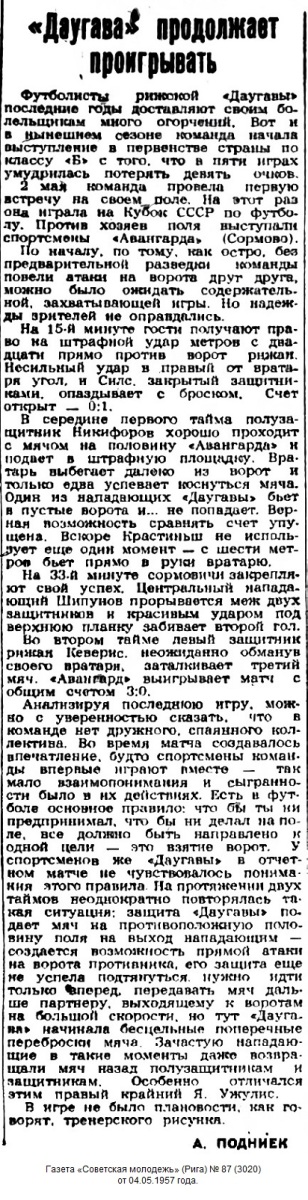 «Даугава» Рига - «Авангард» Горький - 0:3