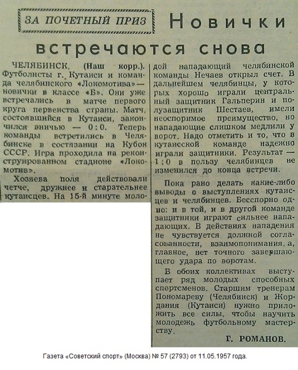 «Локомотив» Челябинск - «Локомотив» Кутаиси - 1:0