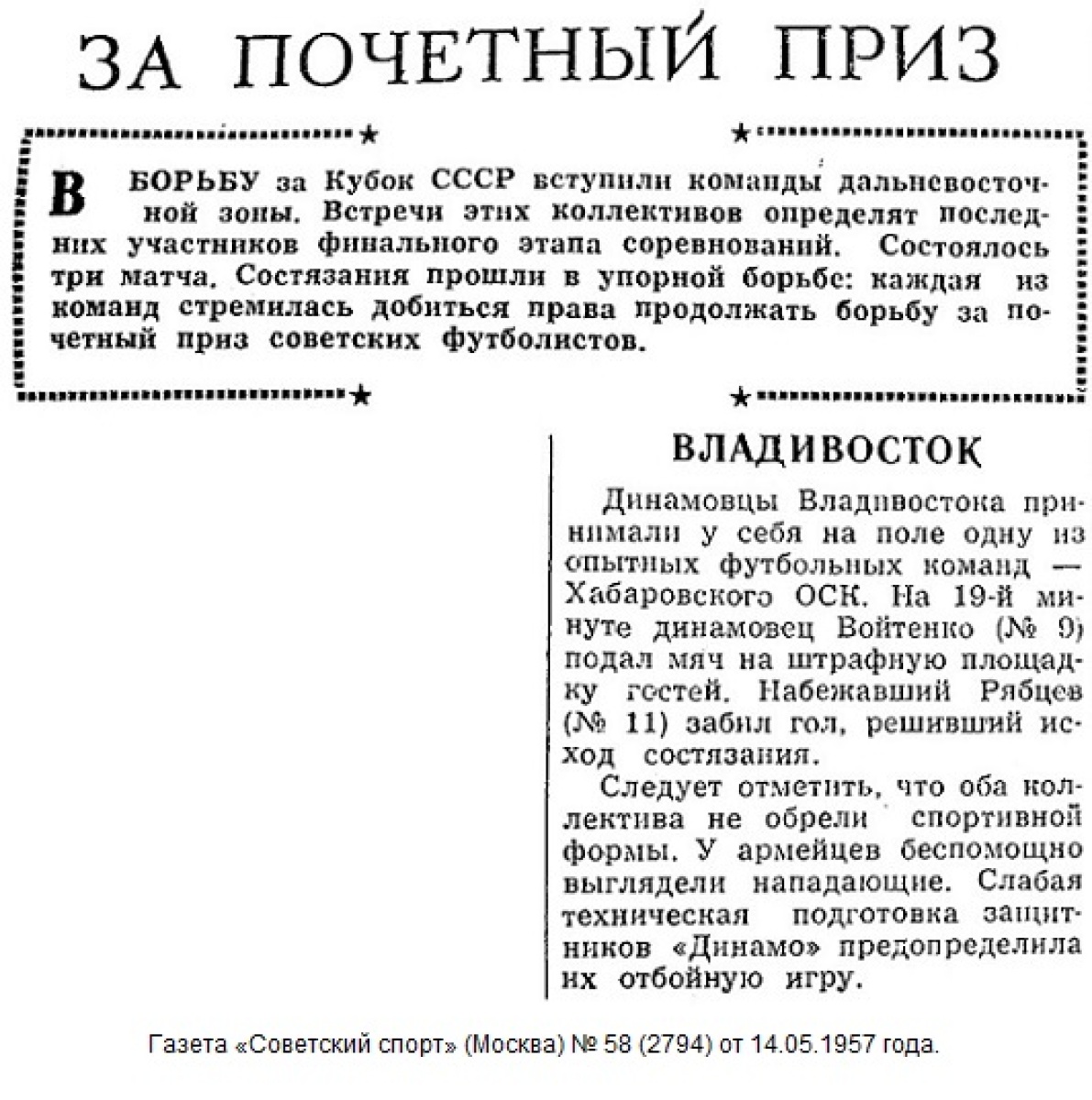 «Динамо» Владивосток - СКВО Хабаровск - 1:0