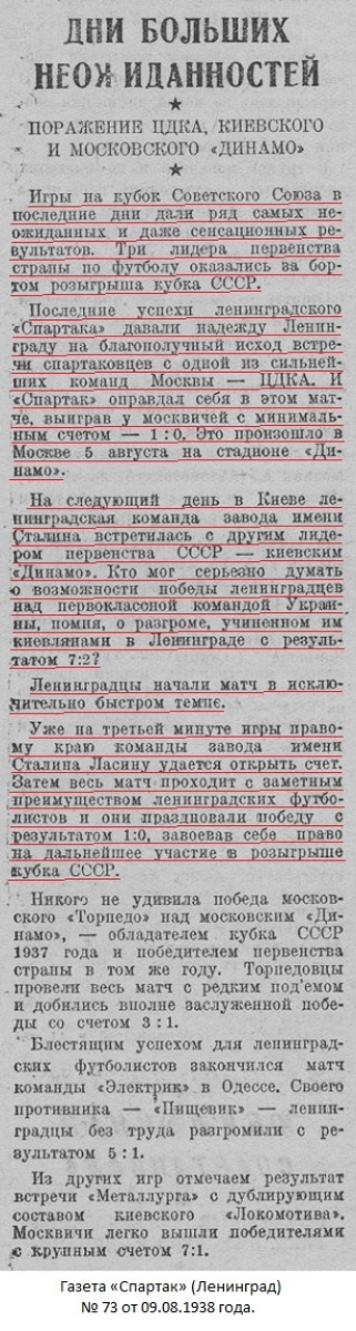 Газета «Радянський спорт» (Киев) № 72 (328) от 08.08.1938 года (перевод).