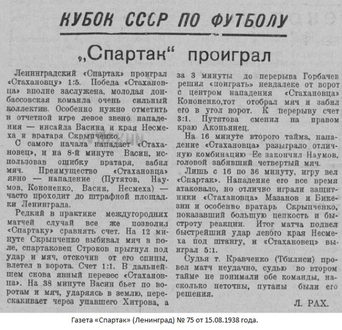 «Спартак» Ленинград - «Стахановец» Сталино - 1:5