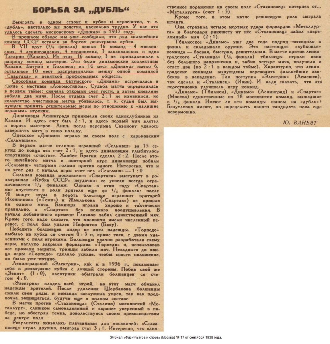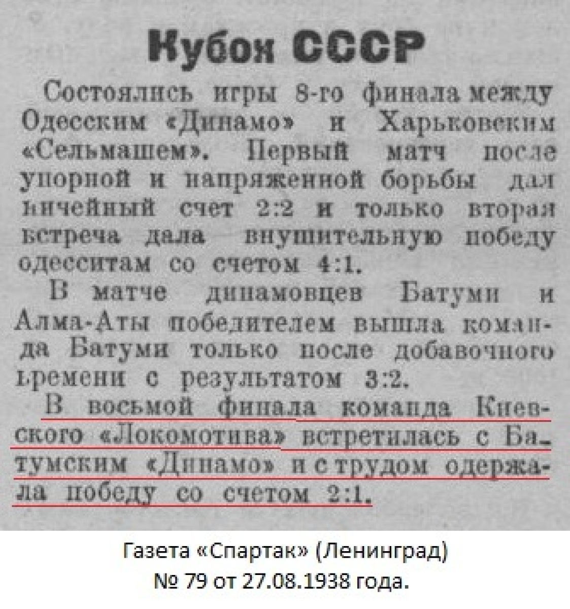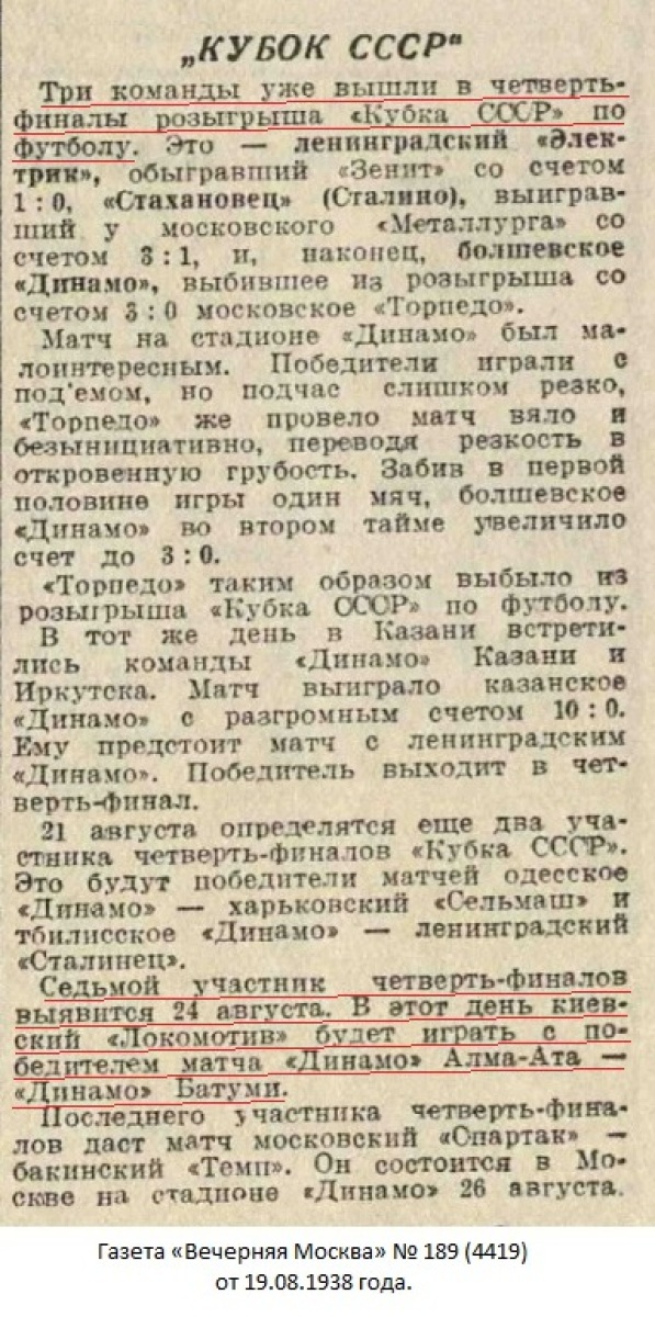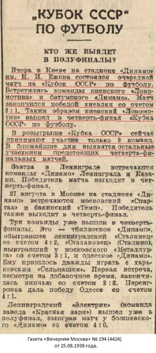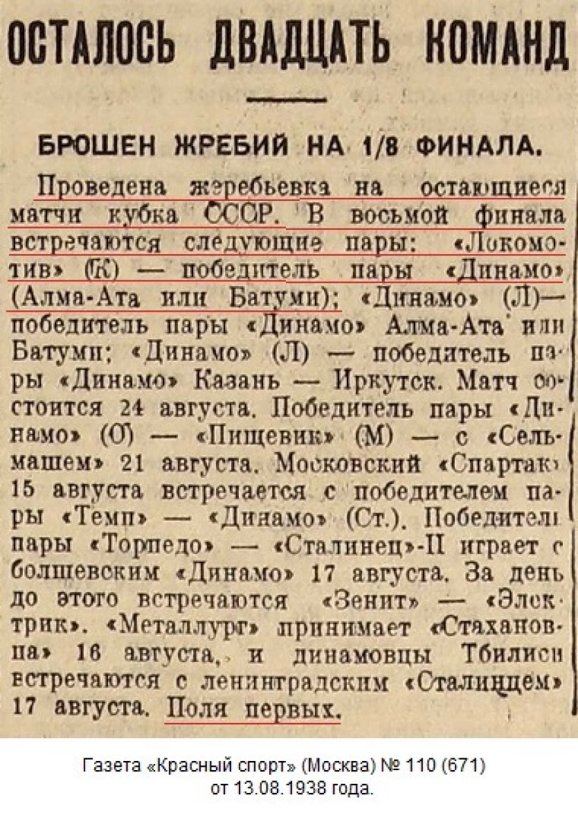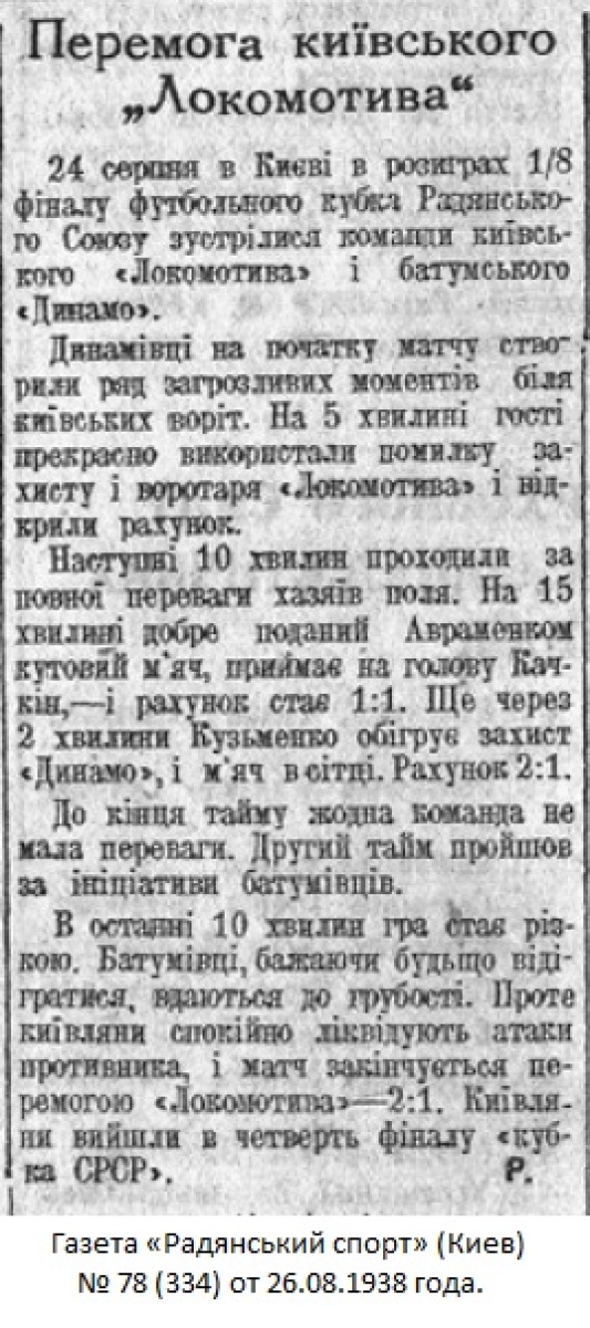 Газета «Радянський спорт» (Киев) № 78 (334) от 26.08.1938 года (перевод).
