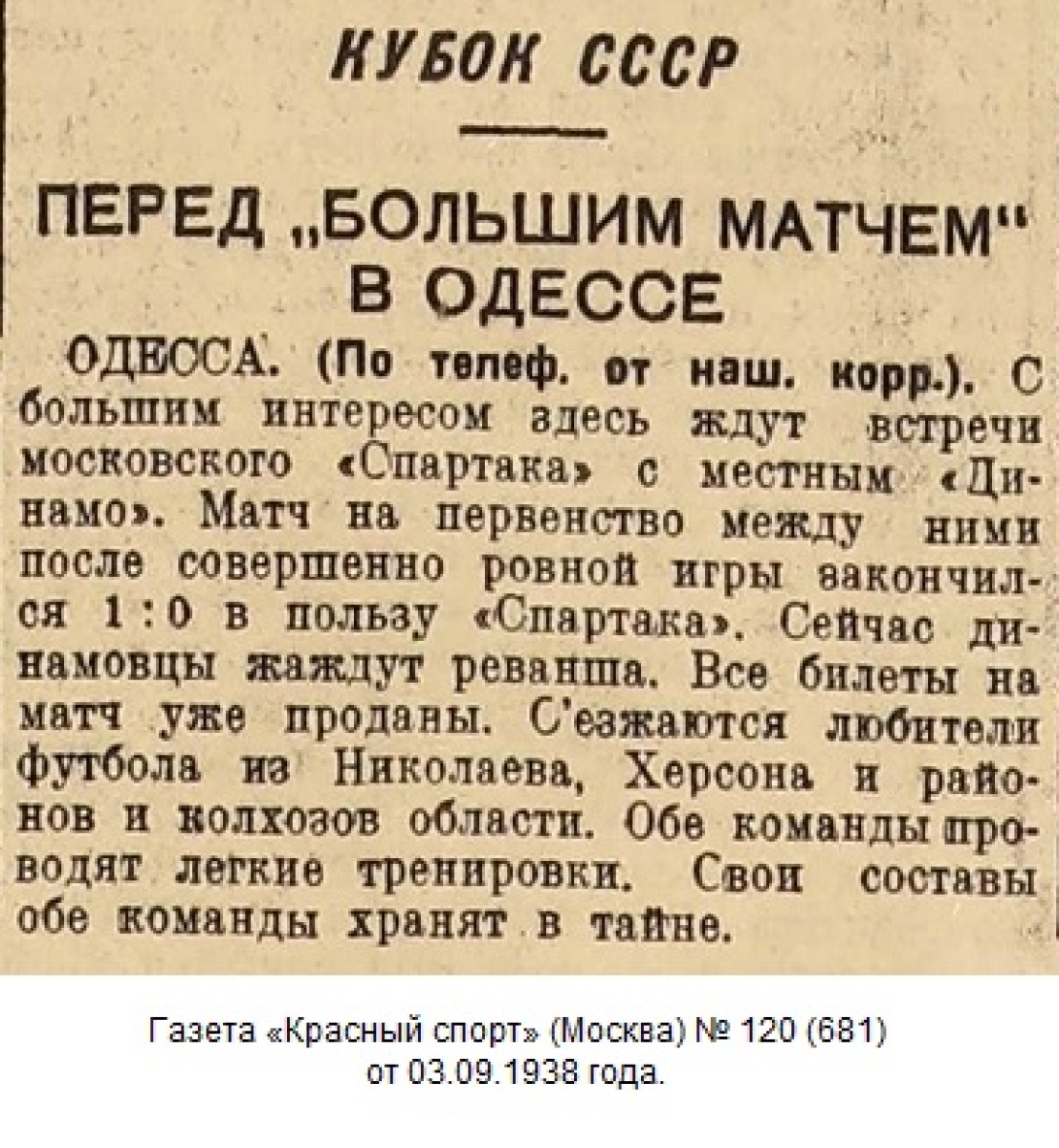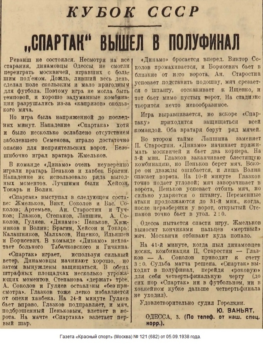 «Динамо» Одесса - «Спартак» Москва - 0:3