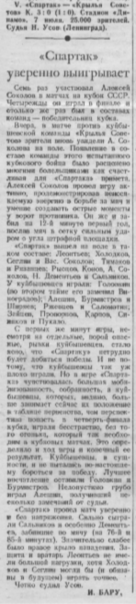 «Спартак» Москва - «Крылья Советов» Куйбышев - 3:0