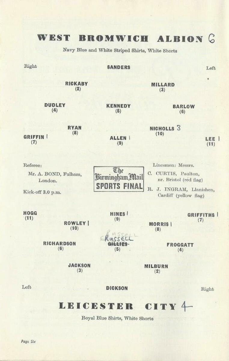 «Вест Бромвич Альбион» Уэст-Бромидж - «Лестер Сити» Лестер - 6:4