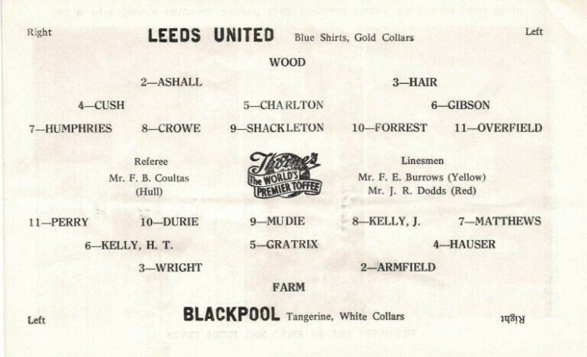На 71-й минуте голкипер Блэкпула Джордж Фарм получил травму и покинул поле, его место в воротах занял Джеки Муди.
