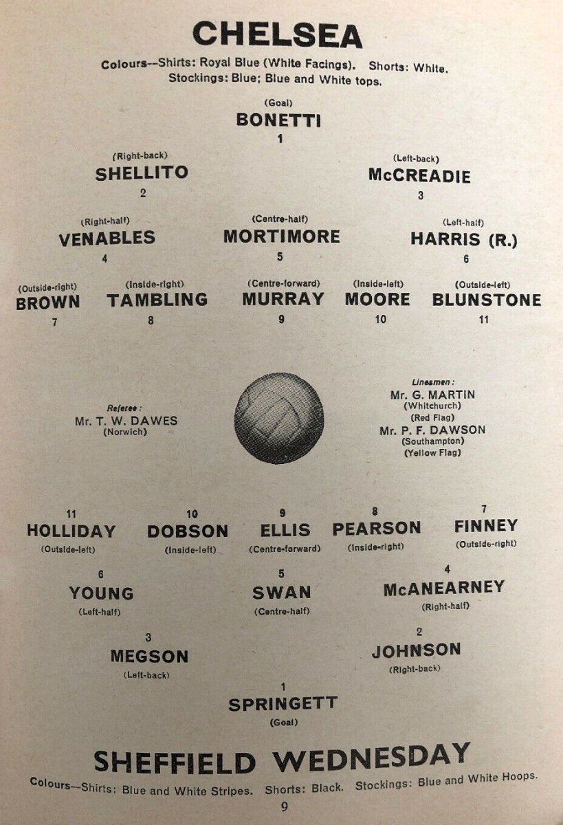 Рефери Том Доэс прекратил своё судейство из-за обострения болезни (тонзиллит) после перерыва матча. Его место занял один из его помощников Джефф Мартин, а стюард «Челси» Чарли Гейлор занял его место.
