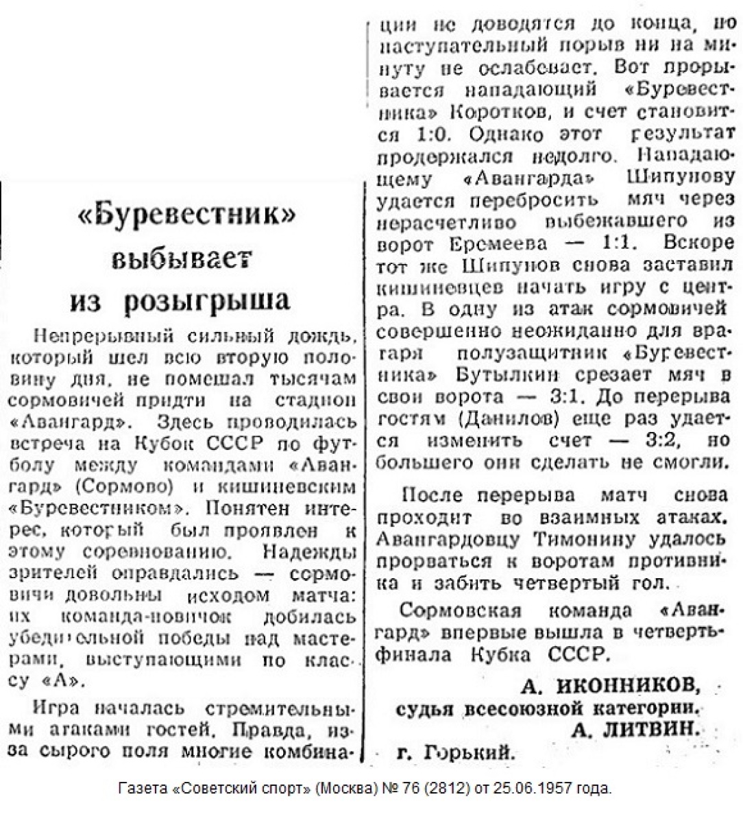 «Авангард» Горький - «Буревестник» Кишинёв - 4:2