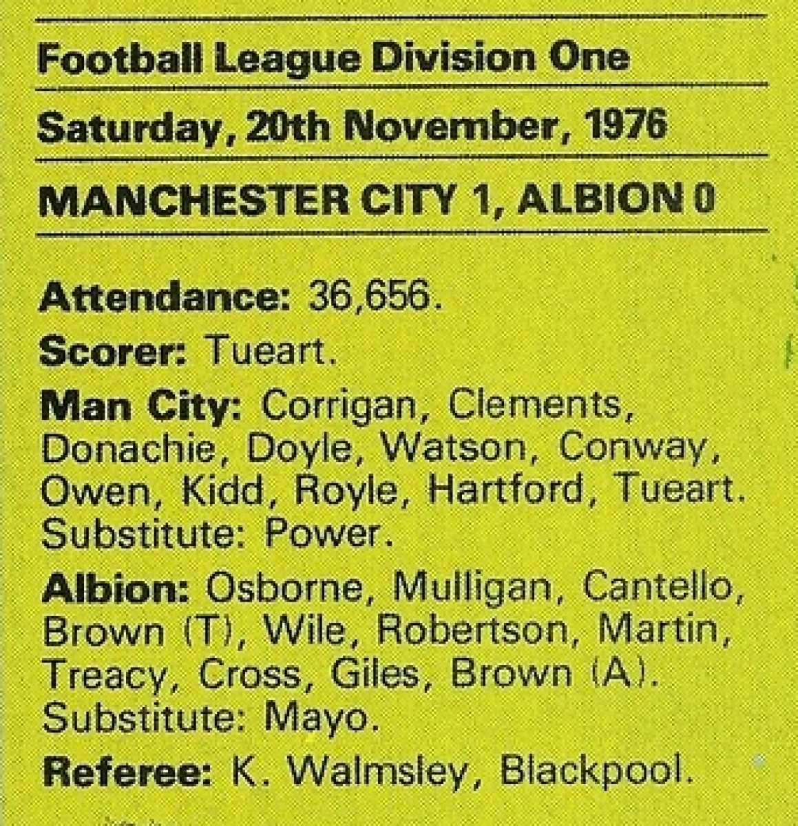 «Манчестер Сити» Манчестер - «Вест Бромвич Альбион» Уэст-Бромидж - 1:0