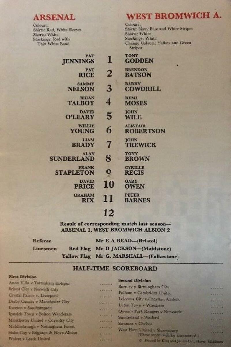 «Арсенал» Лондон - «Вест Бромвич Альбион» Уэст-Бромидж - 1:1