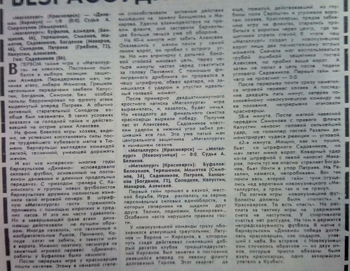 «Металлург» Красноярск - «Динамо» Барнаул - 1:0