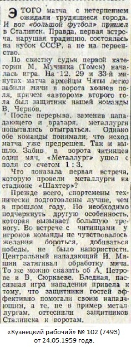 «Металлург» Сталинск - СКВО Чита - 1:3
