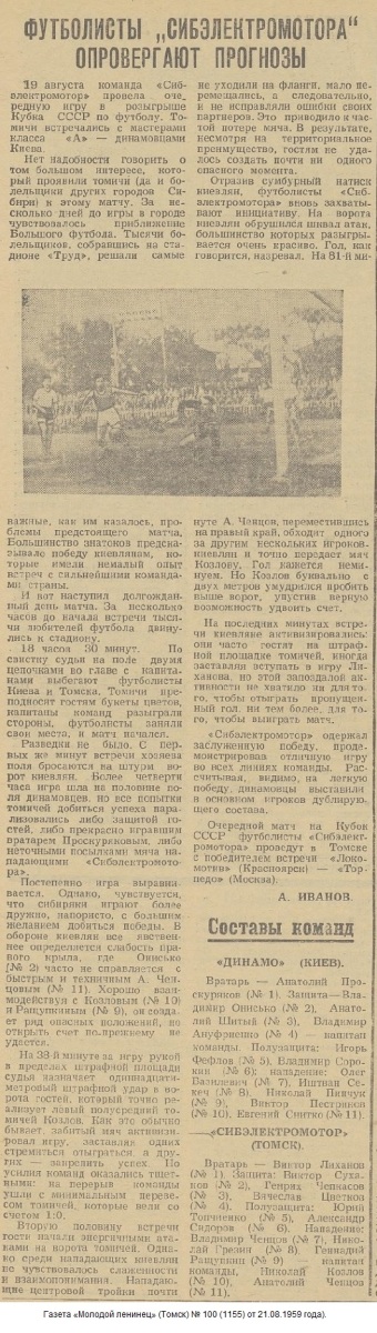 «Сибэлектромотор» Томск - «Динамо» Киев - 1:0