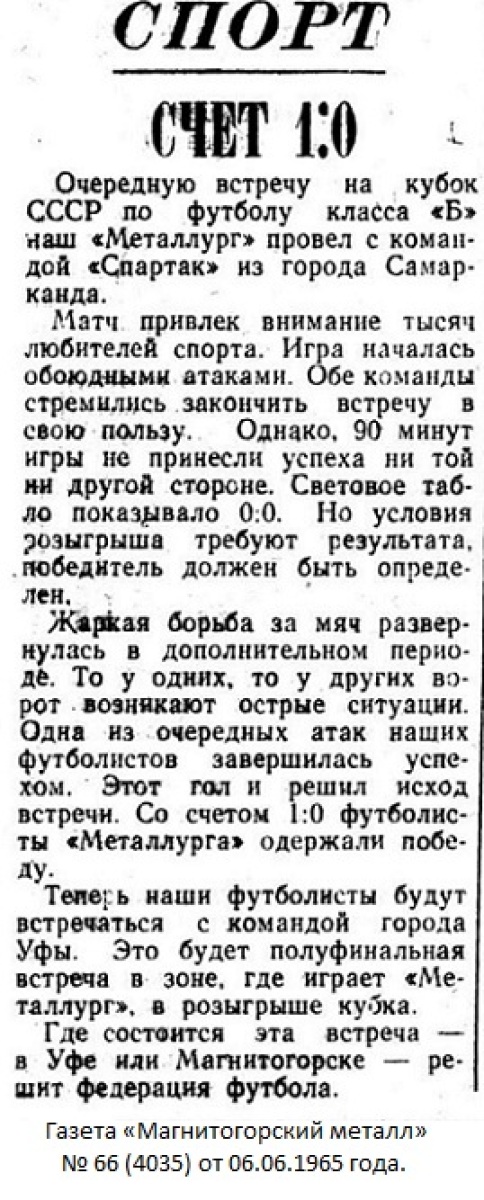 «Металлург» Магнитогорск - «Спартак» Самарканд - 1:0