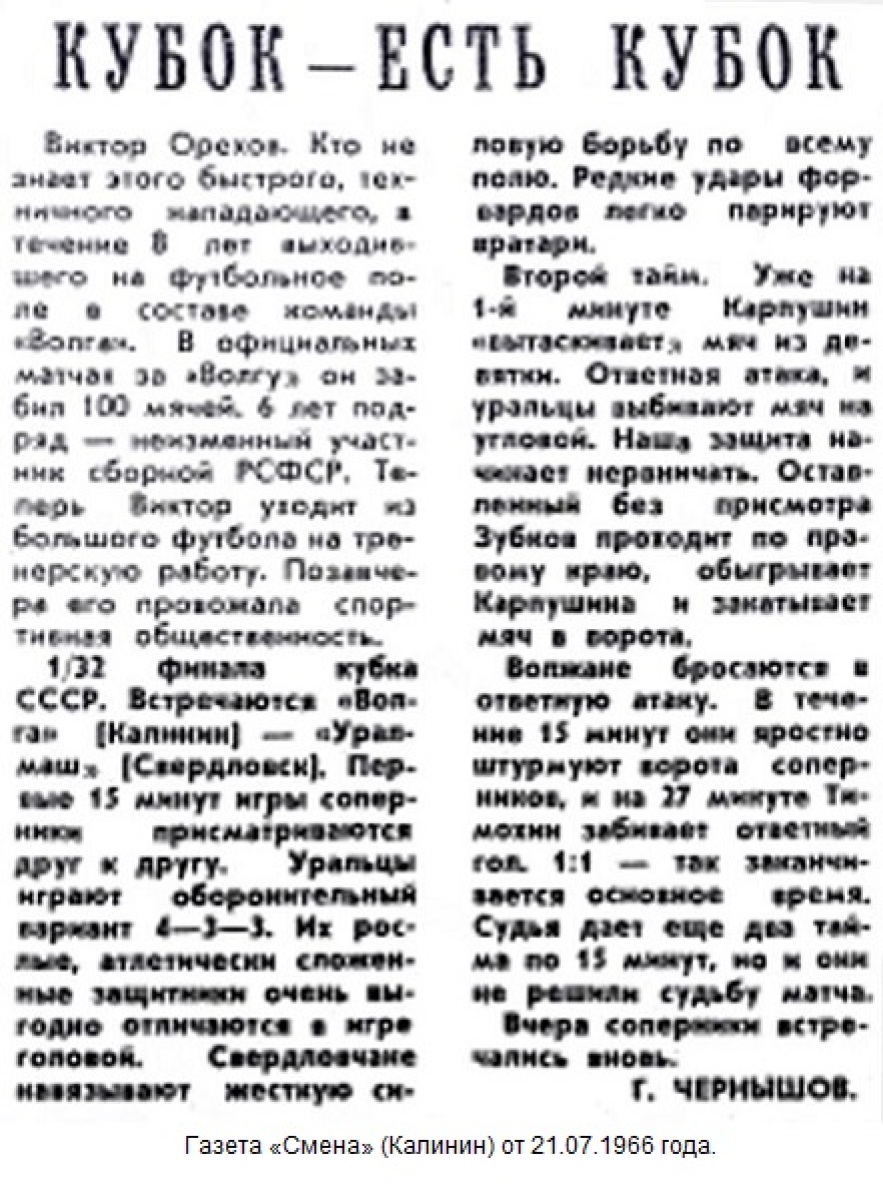«Волга» Калинин - «Уралмаш» Свердловск - 1:1
