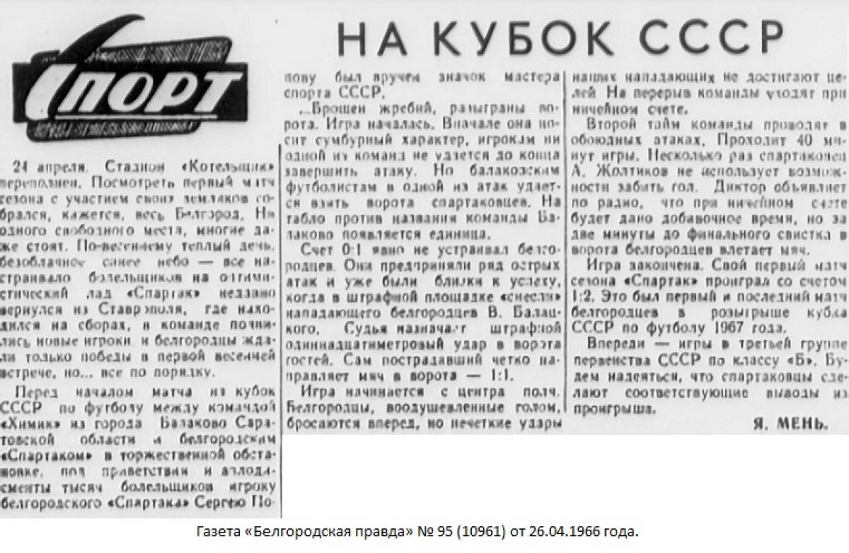 «Спартак» Белгород - «Химик» Балаково - 1:2