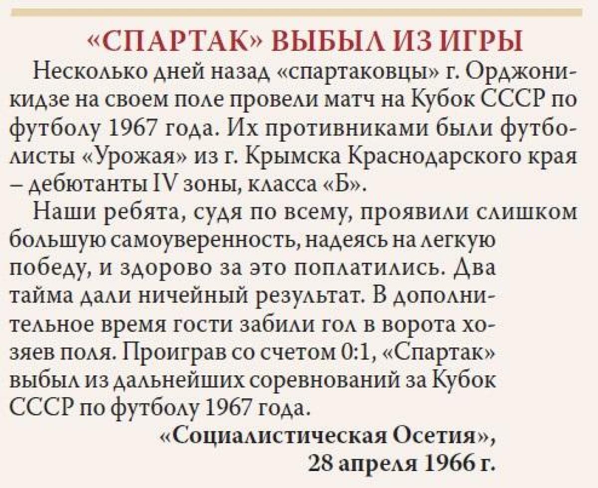 «Спартак» Орджоникидзе - «Урожай» Крымск - 0:1
