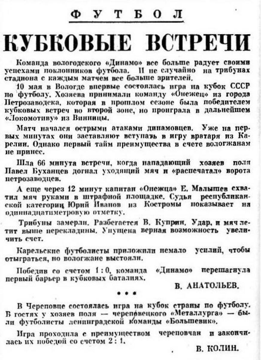 «Динамо» Вологда - «Онежец» Петрозаводск - 1:0
