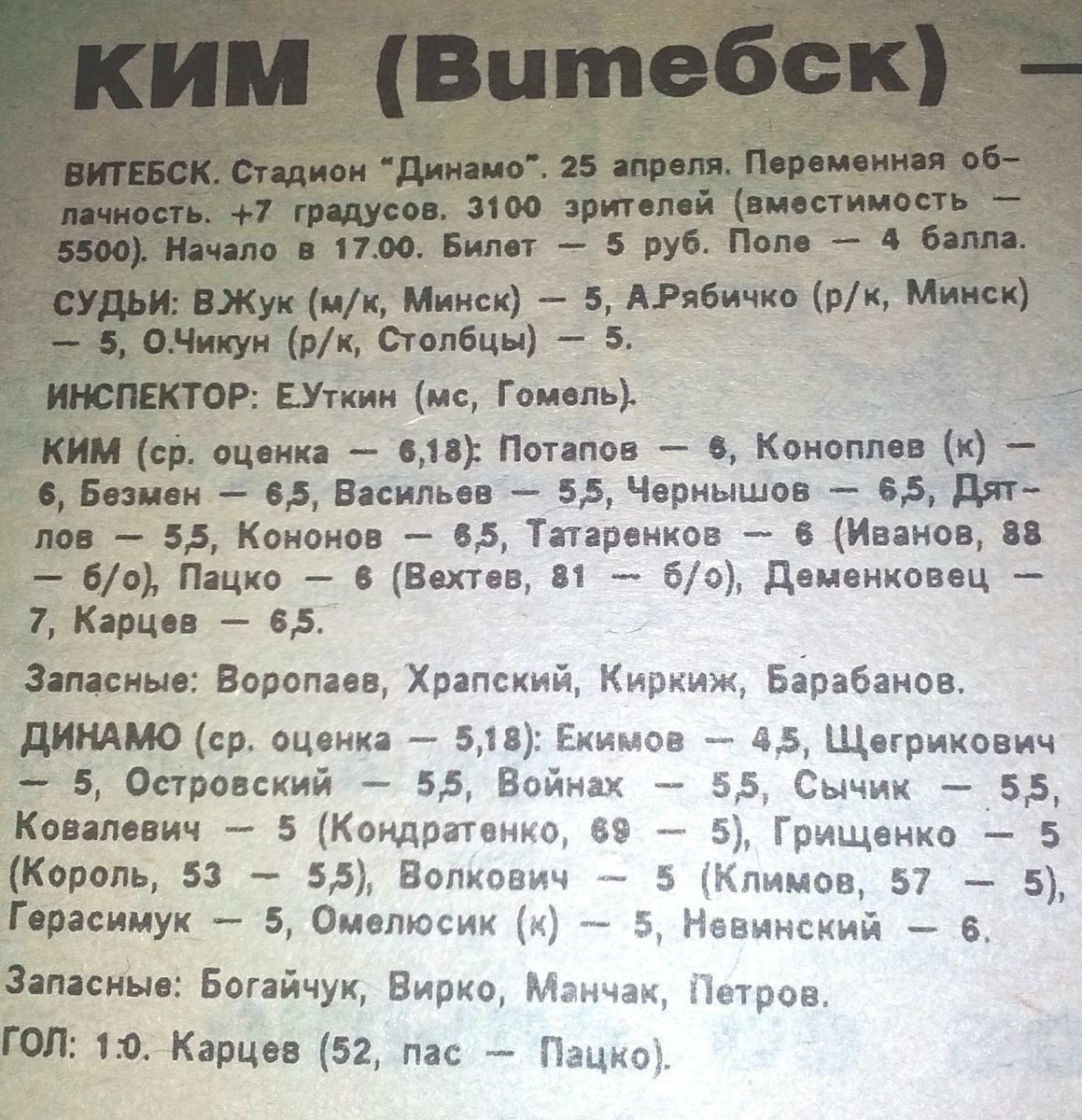 КИМ Витебск - «Динамо» Брест - 1:0