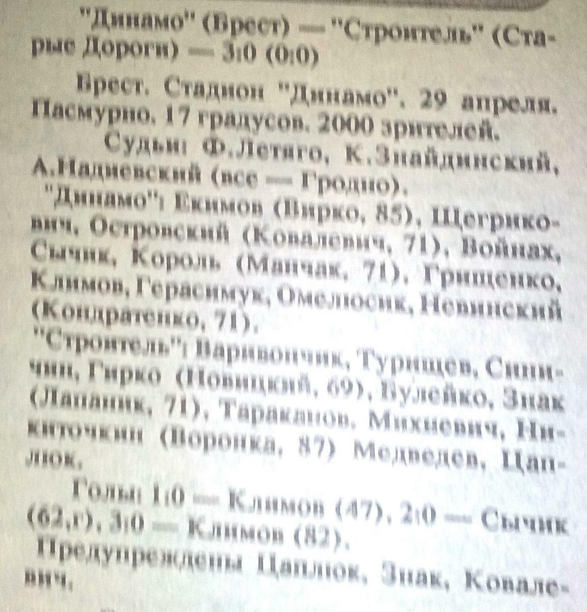 «Динамо» Брест - «Строитель» Старые Дороги - 3:0