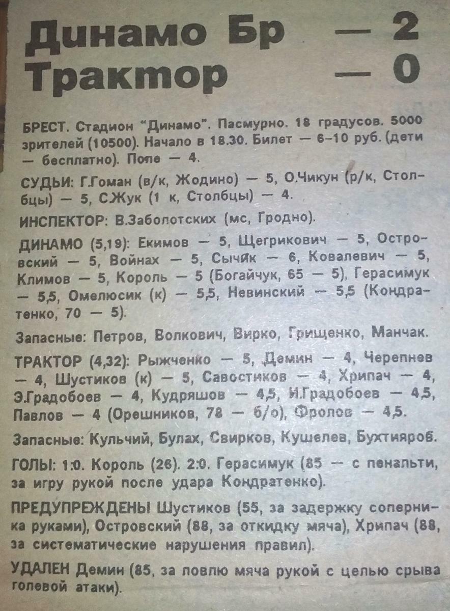 «Динамо» Брест - «Трактор» Бобруйск - 2:0