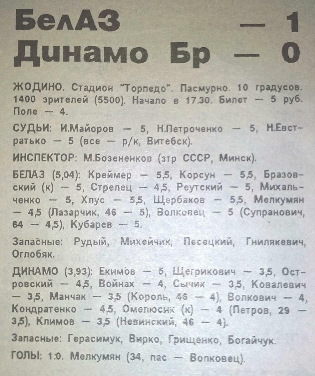 «БелАЗ» Жодино - «Динамо» Брест - 1:0