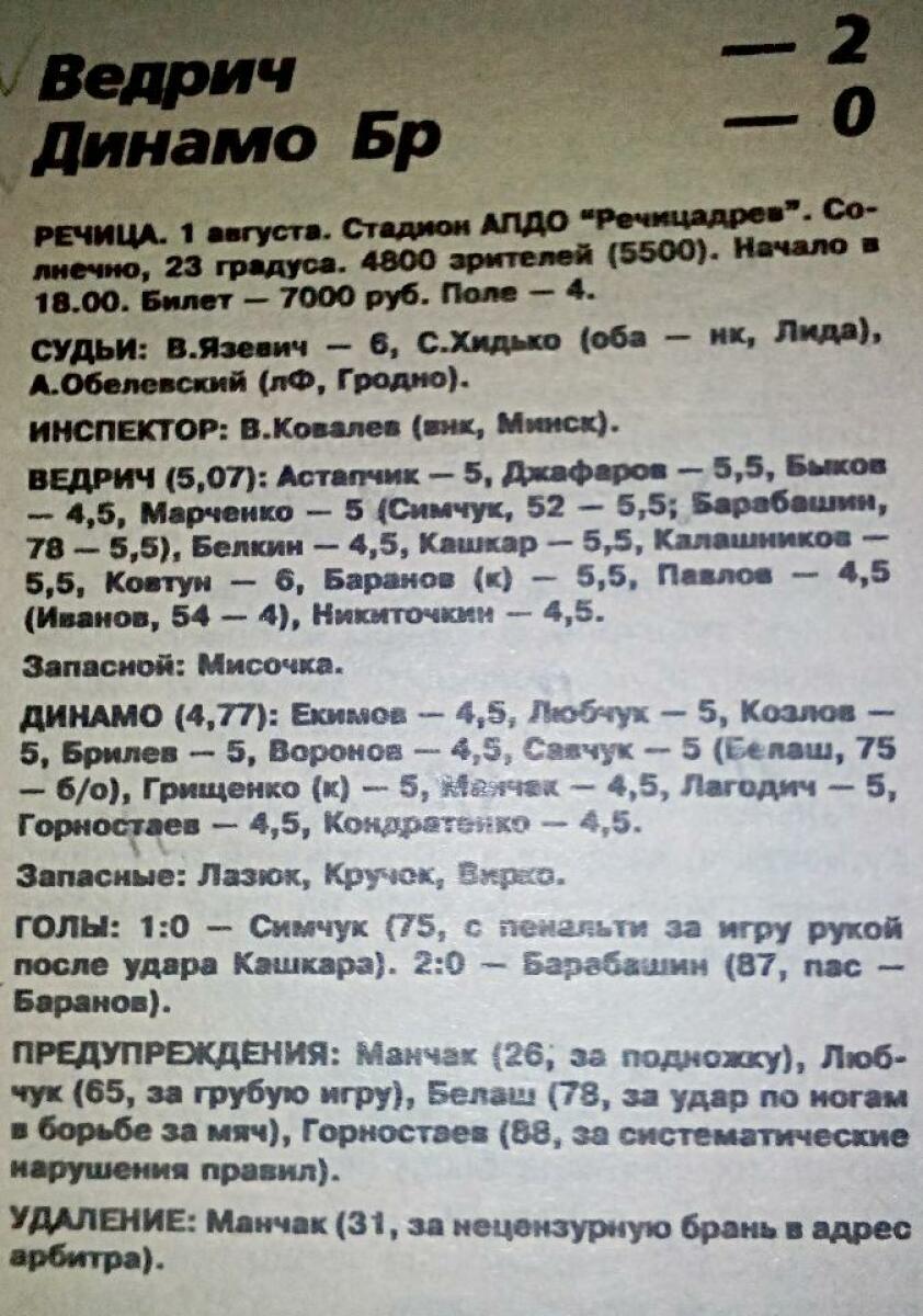 «Ведрич» Речица - «Динамо» Брест - 2:0