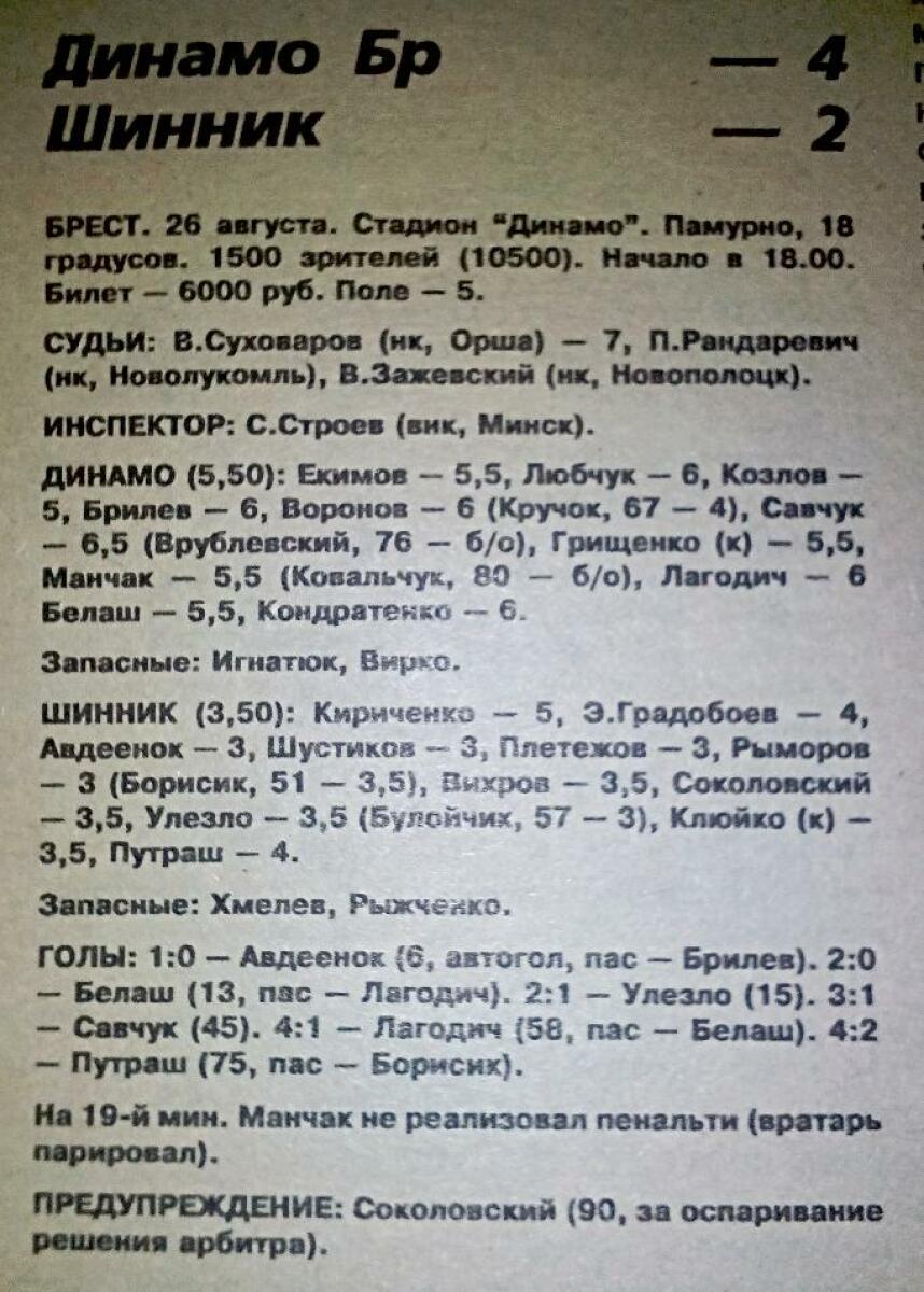 «Динамо» Брест - «Шинник» Бобруйск - 4:2