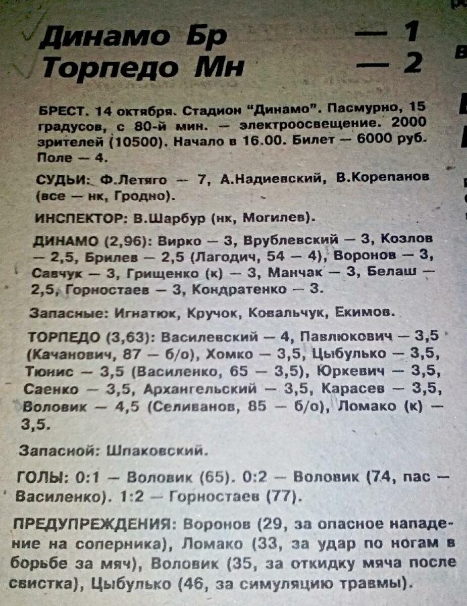 «Динамо» Брест - «Торпедо» Минск - 1:2