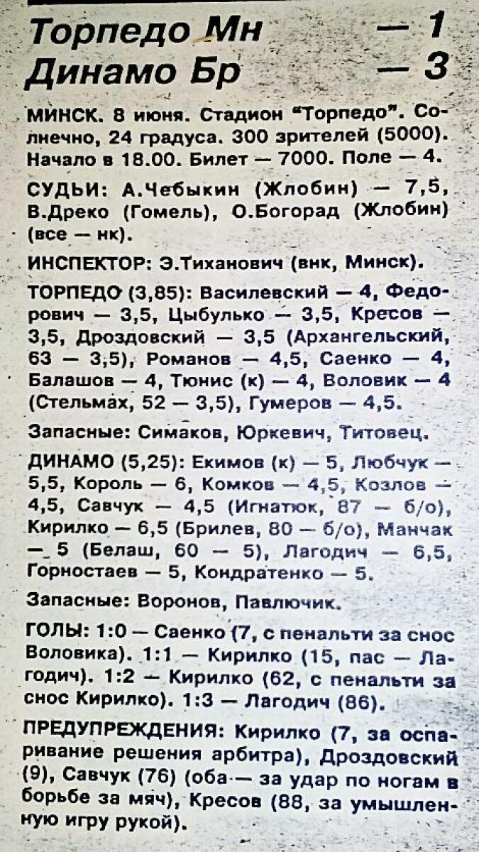 «Торпедо» Минск - «Динамо» Брест - 1:3